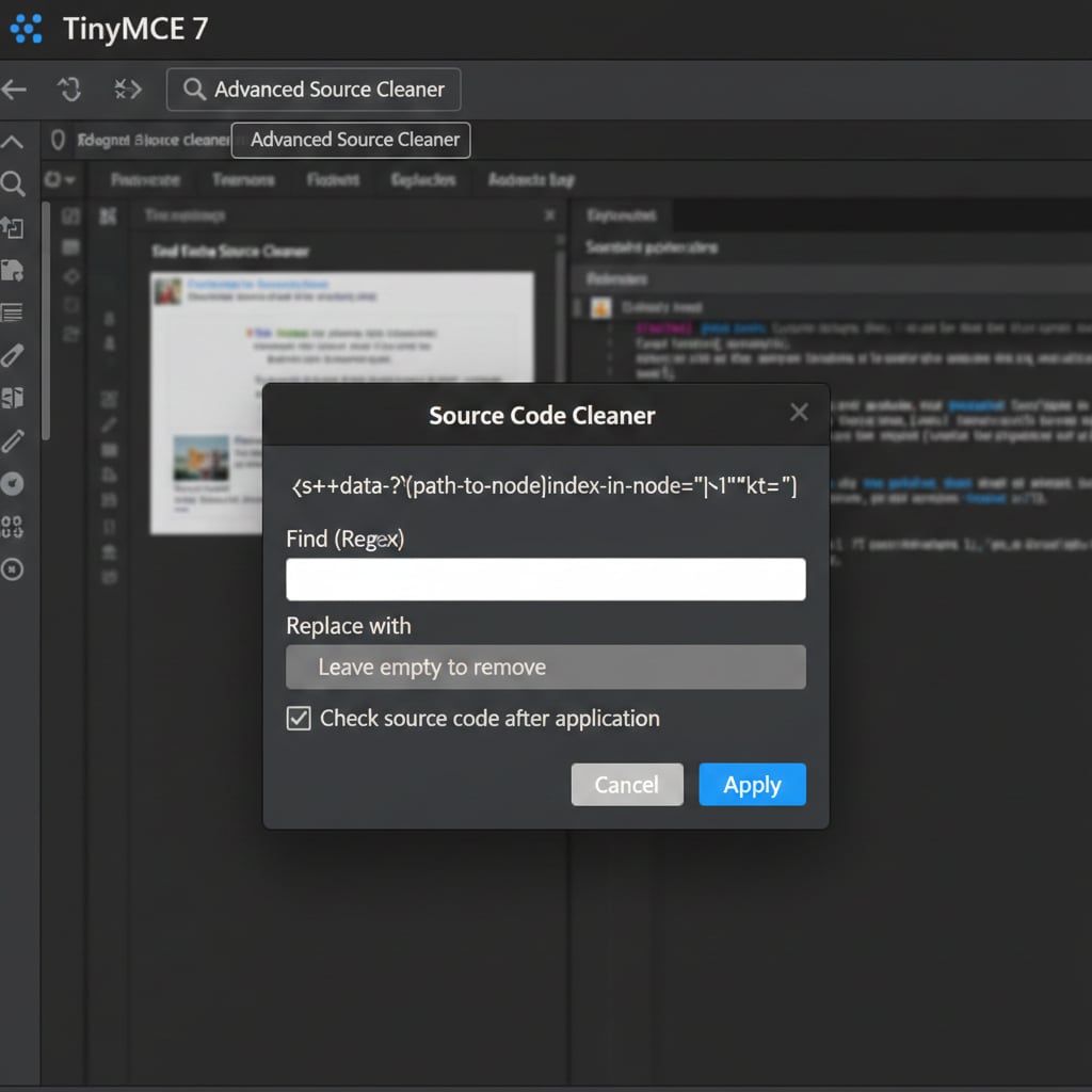 Pour redonner le contrôle aux développeurs et aux créateurs de contenu, je lance advreplace en Open Source : un plugin TinyMCE dédié au nettoyage chirurgical du code source via les expressions régulières.