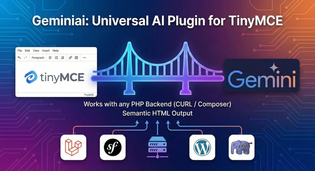 L'intégration de l'intelligence artificielle dans les flux de travail numériques est devenue une nécessité pour optimiser la création de contenu. C'est dans cette optique que j'ai développé Geminiai, une solution universelle permettant de connecter l'API Google Gemini à l'éditeur de texte TinyMCE.