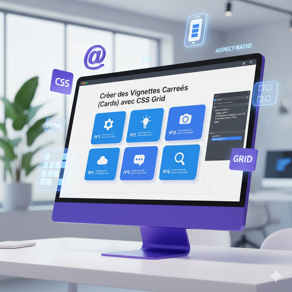 <h1>Créer des Vignettes Carrées (Cards) avec CSS Grid et aspect-ratio</h1>
